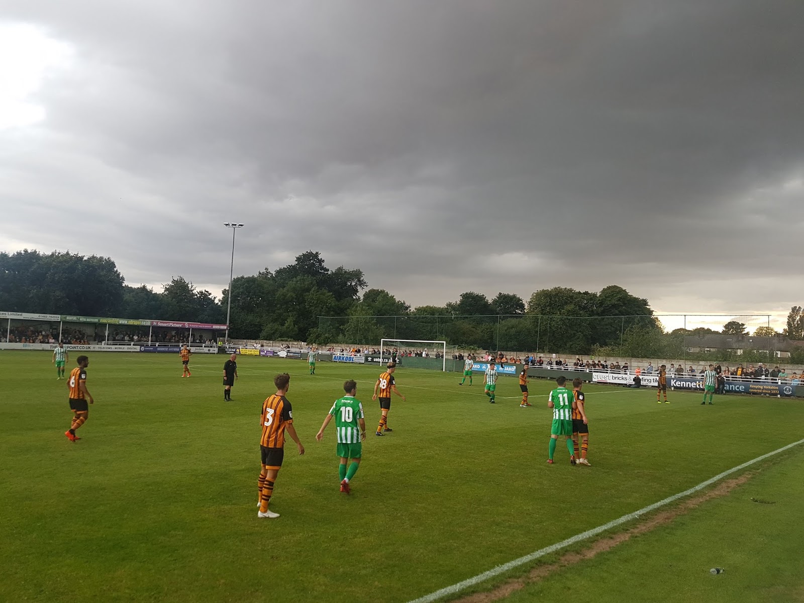 Courtesy of Rick... North Ferriby United 0 Hull City 2: Tigers' Eye View It was nice to see Hull City take to the field at the Chadwick Stadium to face North Ferriby United for the Billy Bly trophy after all – for most of pre-season it didn’t appear that it would happen. please log in to view this image The game against Ferriby used to be the curtain raiser for pre-season and is always a great chance to see the players up close in a low-key environment. It’s a huge help to a lovely local club too. Sadly, it’s been eroded somewhat in reason years with City splitting the squad for the game and then sending only the U23s. Tonight saw a strongish mix of seniors and U23s take to the field and the rest of the squad in attendance to sign autographs and take pictures with delighted young fans. As the heart has been ripped out of club in recent years, it’s nice to be reminded of the joy the players and the club bring to youngsters who idolise them. Now sort out them concessions, City. Starting line-up: Long McKenzie – MacDonald – Curry – Fleming Stewart – Sheaf Milinkovic – Toral – Holmes Campbell City bossed the first half, kicking towards the Allotment End as dark clouds rolled in from the west threatening a downpour that never really came, but created few clear chances for the first half hour. Johnny Saltmer, one of several former City youngsters in the Ferriby ranks, saved well from a Jon Toral pot-shot and just beat Fraizer Campbell to an underhit James Piercy backpass. Elliott Holmes jinked in from the right wing but Ben Leyland produced a great block. Saltmer saved from David Milinkovic but didn’t appear to know much about it and Adam Curry headed the resulting corner down and up onto the crossbar. At the other end, James Nicholls headed Adam Bolder’s corner onto the top of the net in a rare foray forward for the Villagers. Milinkovic, who appears as frustrating as Kamil Grosicki with flashes of brilliance followed by moments of clumsiness then shot wide after exchanging passes with Brandon Fleming before outpacing Dan Nicholls, producing a lovely bit of skill on the bye-line and dinking a cross up for Toral to smash the bar with an overhead kick. The undisputed highlight of a mediocre half. Half time: North Ferriby 0 Hull City 0 The second half started sluggishly for The Tigers and particularly for Kevin Stewart who was muscled off the ball by diminutive former City junior Luke Lofts who played in Jordan Harrison but his cross evaded everyone. Lofts, who was very impressive in midfield for the hosts then robbed Stewart again. I really want Stewart to come good and there is clearly a player in there somewhere but it’s terrifying that we’re watching him in pre-season against a side five divisions below City and he’s still getting caught on the ball. He picked up some useful second balls in the first half but generally didn’t impact a game he ought to be running. Toral, who was probably the pick of the senior City players along with MacDonald, then slid in Campbell who went through on the right and somehow bobbled his shot wide of the post. Campbell then met a brilliantly whipped cross from Fleming but it went straight at Saltmer. Sub Jack Smith made an excellent block to deny Toral who then hit another overhead kick that went wide. Tyler Hamilton replaced Toral and, unconnected, City finally found a breakthrough. Fleming marauded brilliantly on the left and tricked his way inside Smith who fouled him. Milinkovic whipped in the resulting free-kick and Campbell flicked it in from around the near post [0-1]. Daniel Batty replaced Stewart and Billy Chadwick came on for Campbell either side of the couple of moments that decided the game. Dan Nicholls headed a Ferriby corner inches over the bad with George Long stranded and complaining that he was held leaving the goal open. At the other end Milinkovic again races away from Ferriby’s defence and though his cross evaded Campbell, Elliott Holmes arrived to smash it home beyond the far post [0-2]. It was a tidy finish and a nice moment for Holmes who is a lovely little player. Full time: North Ferriby 0 Hull City 2 Negatives: Stewart’s deficiencies have been described. Campbell still looks half a yard short of his best and missed chances he’d have buried once upon a time. Jackson Irvine was kitted out but had to go home ill. That’s a huge shame. Positives: Brandon Fleming was the pick for City with his reading of the play, calm use of the ball and quality in the final third. MacDonald, McKenzie and Curry were very solid and MacDonald seemed to relish being handed the “you hit diagonals” role from Michael Dawson. Milinkovic showed a lot of ability in patches, Toral looked sharp and Holmes deserved his goal. The relationship between fans and players was lovely to see and, hopefully, North Ferriby made a few quid out of the game too. http://boothferrytowembley.blogspot.com/2018/07/north-ferriby-united-0-hull-city-2.html