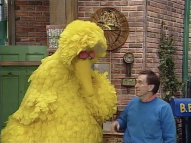 please log in to view this image Sesame Street Episodes, Sesame Street Episode Guide Episode 3517 Picture Segment Description please log in to view this image SCENE 1 Bob helps Big Bird clean up his nest for an upcoming visit from Granny Bird today. She phones him with some bad news: her plane has been delayed and she may not make it at all. Big Bird gets sad, when Bob leaves to fetch something that should cheer him up.